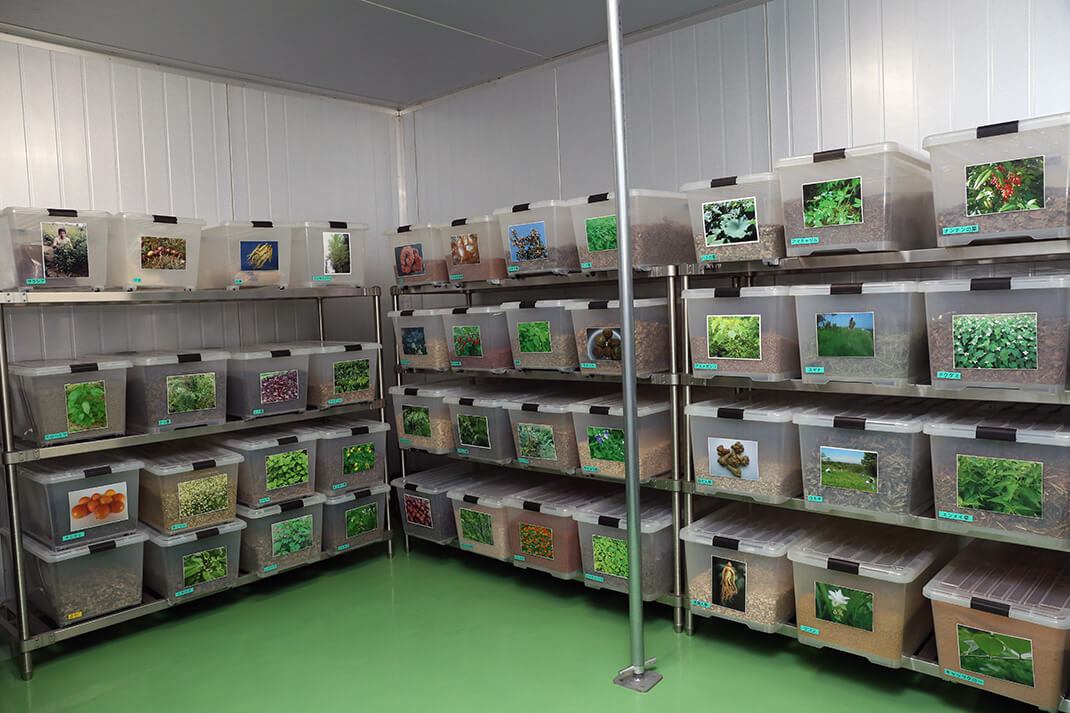 原材料保管庫/各地から収集した80種類にも及ぶ新鮮な野草・果物・海藻類を使用