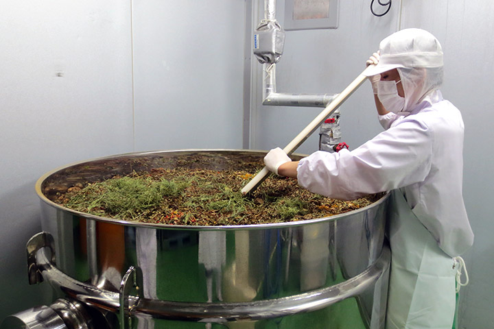 原材料投入/攪拌作業を経てエキスを抽出します