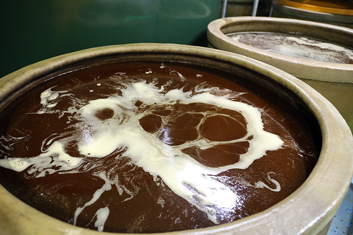 発酵中のエキスは、陶製かめの中で活発に菌を増やしていきます