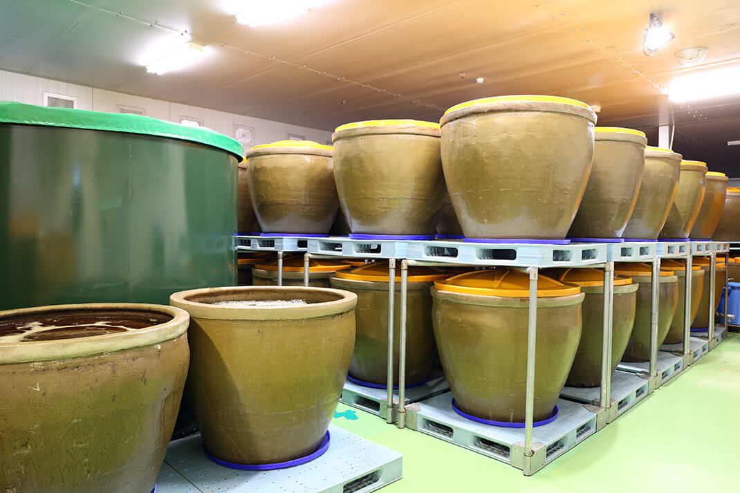 熟成/酵素室内に設置した陶製かめの中で長期熟成させます