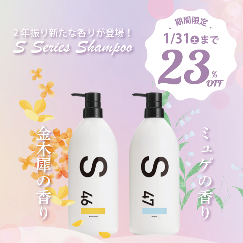 1/31までの期間限定で、新発売の2つの特別な香りのシャンプーを23%OFFで販売中!