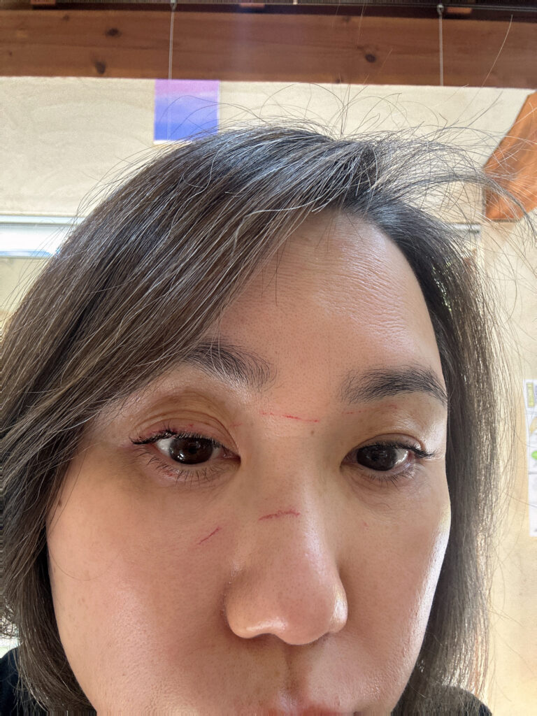 そして顔中にいくつかの切り傷がぁ😨